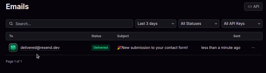 Now we can test the contact form and find all the emails in the resend dashboard.